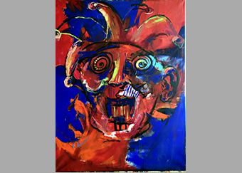 In this painting, I wanted to explore the struggle of wanting to be happy but feeling unable to truly achieve it of putting on a mask of laughter while feeling trapped inside. The exaggerated and chaotic features of the clown are meant to symbolize the disconnect between how we appear on the outside and what we carry within. Clowns are often seen as symbols of joy and entertainment, but here, I wanted to use that imagery to represent the hidden emotional battles we all face.