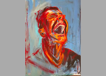 This painting is a raw and visceral expression of human emotion. I used bold, almost violent strokes of red and orange to capture the intensity of a scream not just a sound, but an eruption of everything that burns inside. The face, stretched wide open, is less about physical likeness and more about channeling pure energy and vulnerability.